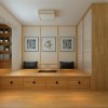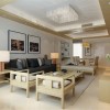 本套为日韩风格装修,客厅地面采用的是大理石装修,局部采用的是地毯进行装饰,墙面采用的是乳白色的乳胶漆进行装修,吊顶采用石膏板进行平顶吊顶,加以吸顶灯做装饰,客厅开敞比较大,且纵向比较深,餐厅后面的酒柜,具有规划性和空间性强的特点,从整体色彩到搭配方面都考虑的无微不至,空间无论是在家具还是配饰上均以其优雅、唯美的姿态,平和而富有内涵的气韵,描绘出居室主人高雅,贵族身份,空间简单而不失雅致,素雅但很清新舒适。