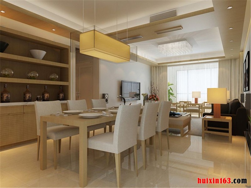 本套为日韩风格装修,客厅地面采用的是大理石装修,局部采用的是地毯进行装饰,墙面采用的是乳白色的乳胶漆进行装修,吊顶采用石膏板进行平顶吊顶,加以吸顶灯做装饰,客厅开敞比较大,且纵向比较深,餐厅后面的酒柜,具有规划性和空间性强的特点,从整体色彩到搭配方面都考虑的无微不至,空间无论是在家具还是配饰上均以其优雅、唯美的姿态,平和而富有内涵的气韵,描绘出居室主人高雅,贵族身份,空间简单而不失雅致,素雅但很清新舒适。
