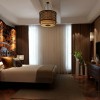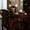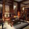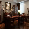 本套为中式古典风格装修,客厅装修酿造典范,客厅布置十分简约,棕色的家具搭配一展素雅魅力,在这个简单舒适的空间中,尽享家庭生活带来的美好。书房靠窗部分安放的极小单人床配合顶部的搁架书柜设计,很好的成就一个阅读角,而椅子随意堆放的书籍,利用空间的同时展现出家的随意温馨。用大幅艺术挂画装点书房背景墙,刻画出极具艺术气质的空间,家具摆设中常出现的布局,整体给人一种奢华稳重的感觉。